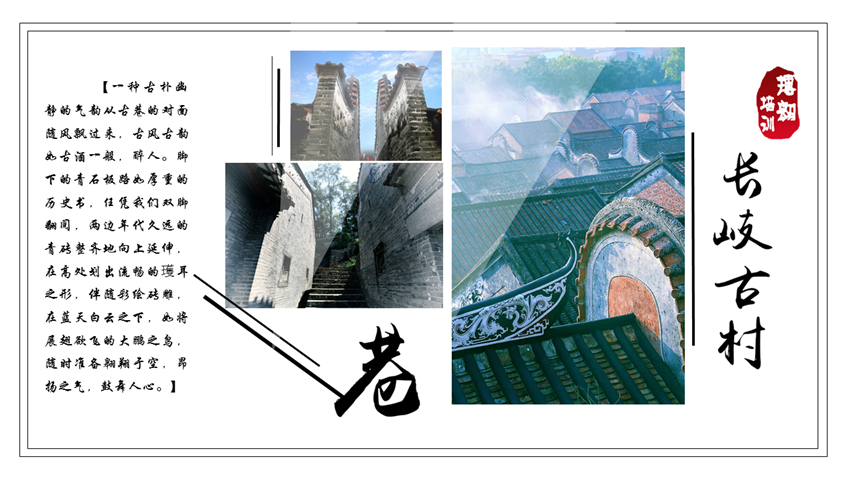 長(zhǎng)岐村中可以找到的最老的建筑材料距今已有300多年的歷史,即老房子根下的紅色巨巖。那些紅巖是用船自西江運(yùn)來(lái)的。始建于明末清初的鐘氏、黃氏、盧氏等宗祠幾經(jīng)翻新,依然竭力保留原貌,尤其是如今村里人數(shù)最多的盧氏宗祠,里面的壁畫和雕刻已有上百年的歷史。