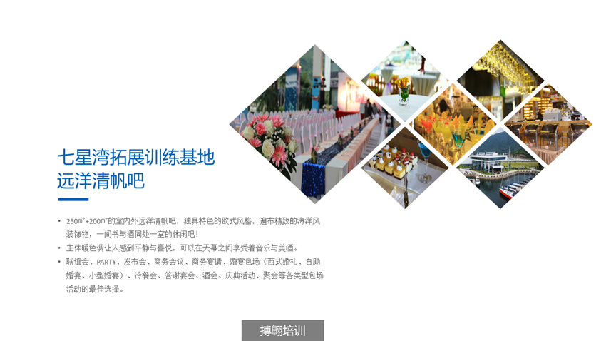七星灣拓展訓(xùn)練基地總面積31萬平方米。集戶外運動、海上觀光旅游、培訓(xùn)、休閑、娛樂、度假、博物館、商務(wù)活動于一體,提供帆船體驗、游艇租賃、海島游、青少年及成人帆船培訓(xùn)、帆板體驗、皮劃艇體驗、拓展培訓(xùn)、潛水體驗、汽車電影、攀巖、藝術(shù)創(chuàng)作、購物、艇艇銷售、展覽、ATV試駕及住宿、餐飲、會議等配套服務(wù)。